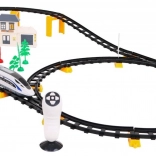 Ce superbe set comprend 52 pièces pour une longueur totale de voie de 396 cm. Le train est piloté par une télécommande permettant un mouvement vers l’avant et vers l’arrière. Les rails disposent d’un système d’assemblage simple et solide, assurant sécurité et durabilité. La locomotive et les wagons sont fabriqués en plastique de haute qualité pour garantir une longue durée de vie.