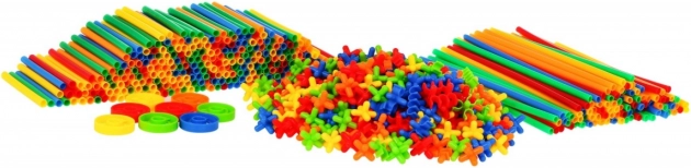 | Grande boîte de construction – les pailles de construction sont un jouet pour les enfants dès 3 ans. L’ensemble contient jusqu’à 800 éléments avec lesquels votre enfant peut construire de magnifiques structures telles que tours, véhicules, ponts, bâtiments, etc. Les tiges s’assemblent parfaitement entre elles à l’aide de connecteurs. Elles sont fournies en différentes couleurs : vert, rouge, bleu, orange et jaune. L’ensemble est emballé dans une boîte en plastique avec une poignée de transport. Un manuel illustré avec des exemples de constructions à réaliser est également inclus. Jouer avec ces pailles développe l’imagination de l’enfant et l’initie à la pensée créative et logique. | ||