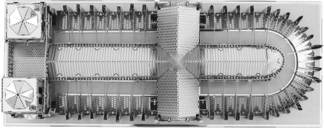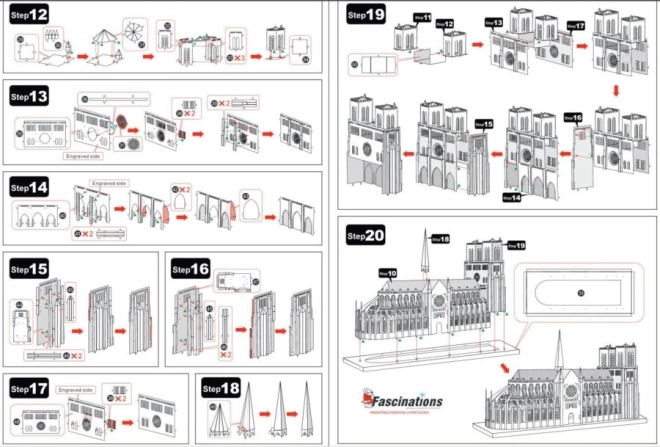 Détachez les pièces des plaques métalliques ; si nécessaire, utilisez une petite pince coupante (non incluse). Les pièces s’assemblent au moyen de verrous formés par une languette et un trou. Pliez la languette à l’aide de petites pinces fines (non incluses) et assemblez progressivement tous les verrous jusqu’à obtenir une pièce maîtresse très réaliste !