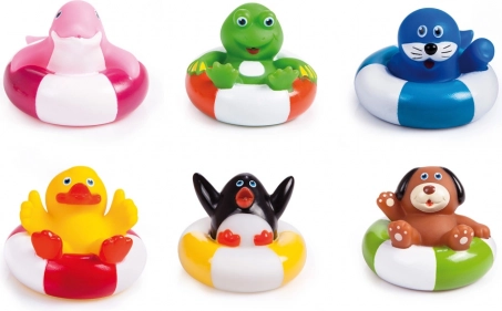 Une joyeuse bande d’animaux sur bouées apporte une foule de plaisirs aux enfants, dans la baignoire comme dans une petite piscine. Chaque animal a une taille compacte adaptée aux mains des enfants, des formes douces et lisses, et des couleurs intenses qui attirent l’attention et encouragent l’exploration. Les jouets flottent librement à la surface, parfaits pour les premiers jeux d’eau et l’entraînement de la prise en main.