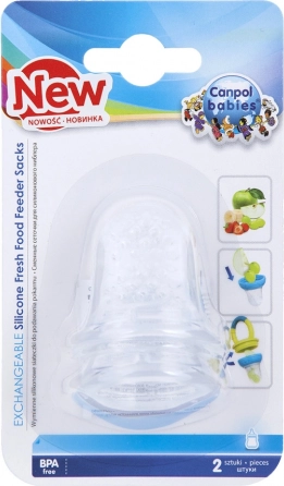 Ces filets de rechange en silicone sont exclusivement destinés à la poignée du filet d’alimentation (réf. 56/010). Ils permettent aux enfants de goûter en toute sécurité différents aliments – des fruits et légumes frais aux pains moelleux ou fromages – et favorisent ainsi naturellement la transition du liquide au solide. La surface finement perforée réduit le risque d’étouffement par de gros morceaux.
