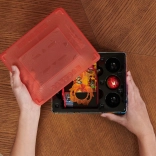 La disposition ingénieuse à deux étages accueille jusqu’à 6 Bakugan, 2 paquets de cartes et des anneaux d’attaque. Le couvercle amovible se change instantanément en arène pour se battre partout.