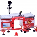 Inclus, deux petits camions rouges aux détails soignés, dont un avec échelle télescopique. Idéal pour des scénarios de secours et des déplacements autour de la station.