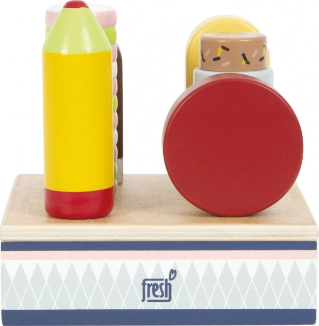 Ce set de glaces en bois est idéal pour jouer à la boutique ou au café. Le présentoir robuste maintient les six glaces bien visibles, afin que les petites mains puissent facilement choisir leur « parfum » préféré et servir les clients. Grâce au bois certifié FSC, le jouet est non seulement beau, mais aussi respectueux de la nature.