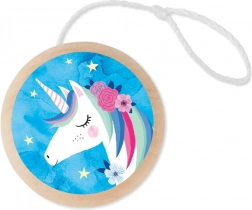 Ce yo-yo classique est fabriqué en bois et présente de belles illustrations de licornes de chaque côté. Il est parfait pour les petites mains des enfants et apporte joie et fascination. Le yo-yo aide les enfants à développer leur agilité et leur coordination des mouvements, ce qui est essentiel pour leur développement moteur.