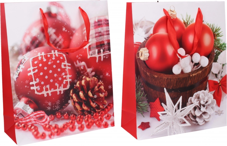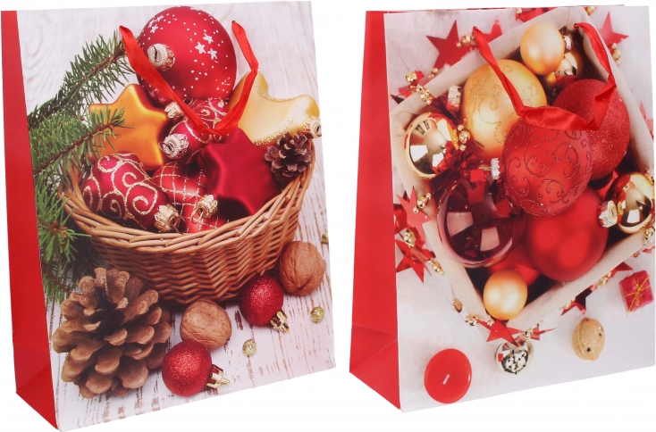 Sac-cadeau de Noël élégant, taille M, dimensions 26 × 32 × 10 cm. Idéal pour un emballage de cadeaux rapide et raffiné. Au choix, 4 motifs festifs qui donnent à vos surprises une apparence exceptionnelle.