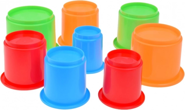 Le set comprend 8 gobelets aux couleurs vives qui s’emboîtent pour gagner de la place. Livré dans une boîte cadeau colorée – une excellente idée de cadeau d’anniversaire et un premier jouet d’éveil.
