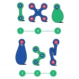 Seulement 18 pièces légères pour créer des dizaines de formes. Faciles à glisser dans un sac à dos et à emporter partout.