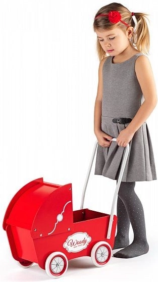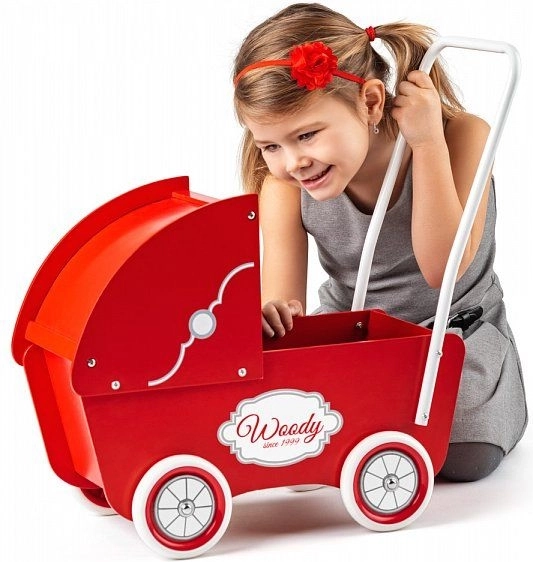 La poussette pour poupées en bois rouge au look rétro est idéale pour les enfants dès 3 ans. Grâce à sa fabrication solide en bois et à ses roues qui tournent en douceur, la poussette est stable et facile à manœuvrer à la maison comme en promenade.
