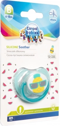 La sucette en silicone stylée SO COOL de la marque Canpol babies pour les enfants de 6–18 mois assure calme et confort. Elle possède une tétine en silicone symétrique, un bouclier aéré pour une meilleure circulation de l’air et est sans BPA. Un anneau pratique facilite la manipulation et la fixation à une chaîne. Contenu de l’emballage : 1 pièce.