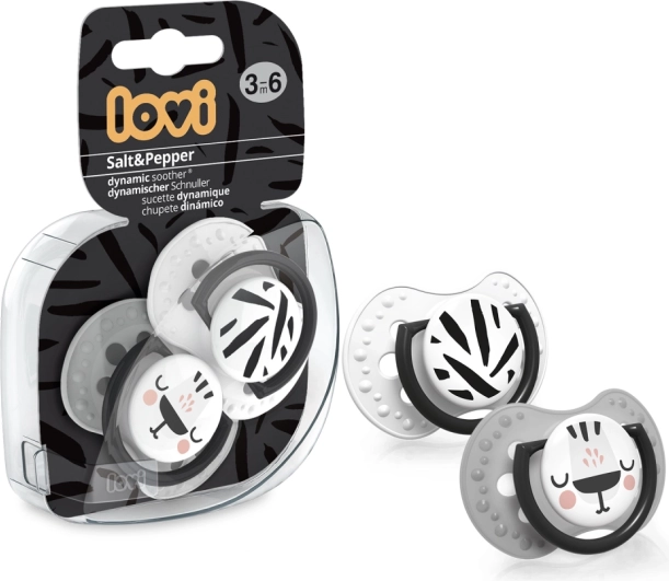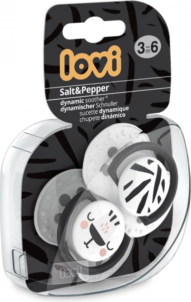 LOVI tétine dynamique en silicone Salt & Pepper, 3–6 mois, 2 pcs