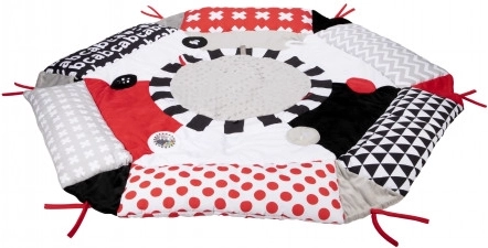 Grâce aux couleurs contrastées et aux textures variées, ce tapis aide à développer la vue et la capacité de concentration dès le plus jeune âge.