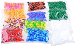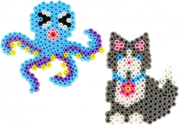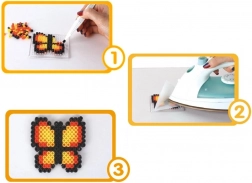 - env. 6000 perles à repasser, 6 modèles, 10 plaques, 12 sachets de perles de différentes couleurs, 2 pinces, 2 feuilles de papier sulfurisé, boîte de rangement à compartiments