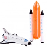 Le set comprend un module de navette de dimensions 15 cm x 10,5 cm x 6 cm et un réservoir principal avec fusées auxiliaires de dimensions 22 cm x 7 cm x 4 cm.