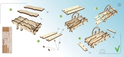 Les pièces découpées au laser dans du contreplaqué s’emboîtent parfaitement. Il suffit de les détacher des plaques et d’assembler selon le guide illustré.