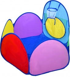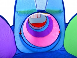 L’ensemble est fabriqué en polyester léger, facile à nettoyer, et grâce à sa construction pliable, il se monte en un clin d’œil dans le salon, la chambre d’enfant, sur la terrasse, au jardin ou à la plage. Des couleurs gaies et des éléments connectables de manière variable stimulent le jeu créatif, que les enfants construisent une cachette, un parcours d’obstacles ou une arène à balles.