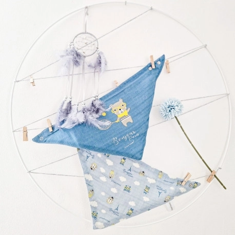 La fermeture à boutons-pression pratique permet d’ajuster le tour selon les besoins du bébé. Le lot de 2 pièces aux motifs bleus assortis est idéal pour le trousseau comme accessoire stylé.