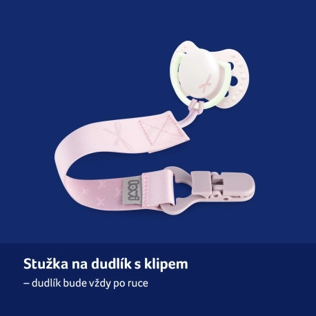 La lanière pour tétine assure une fixation solide aux vêtements et protège la tétine contre la perte ou la salissure.