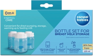 Ensemble de bouteilles Canpol pour le stockage du lait maternel 3x120ml