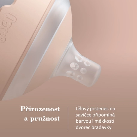 - Naturalité et élasticité : L’anneau délicat de la tétine rappelle la couleur et la douceur du sein maternel.