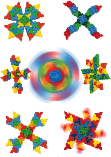 Un plastique robuste sans substances nocives et un système d’emboîtement ingénieux sur plusieurs côtés garantissent une stabilité et une longue durée de vie. Les grands diamètres des toupies finies, jusqu’à environ 20 cm, assurent une rotation spectaculaire et encouragent l’expérimentation avec les formes et les principes de base de la physique.