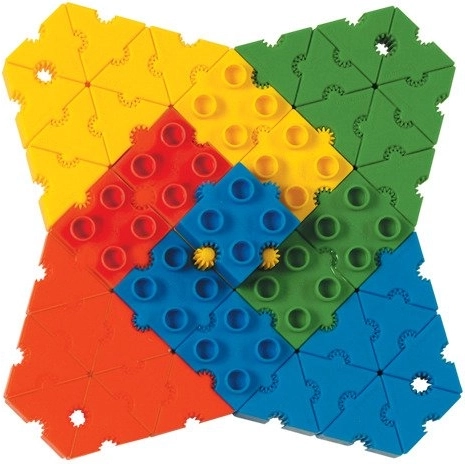 Les pièces à enclenchement s’assemblent solidement depuis plusieurs directions. Les enfants créent ainsi facilement des constructions 2D et 3D stables et développent leur logique.