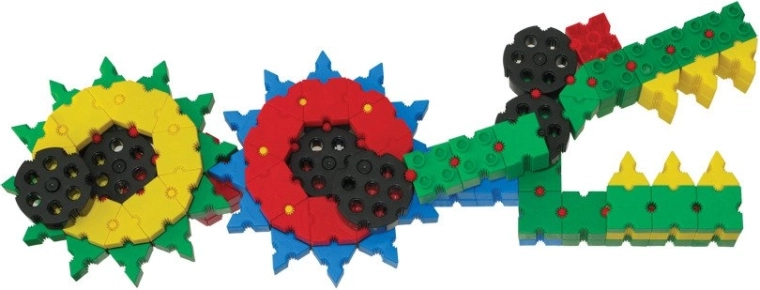 • Construction créative – différentes configurations d’engrenages et de formes.