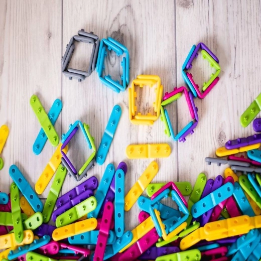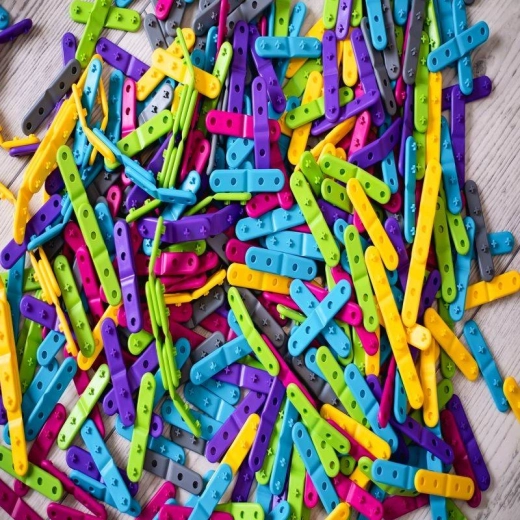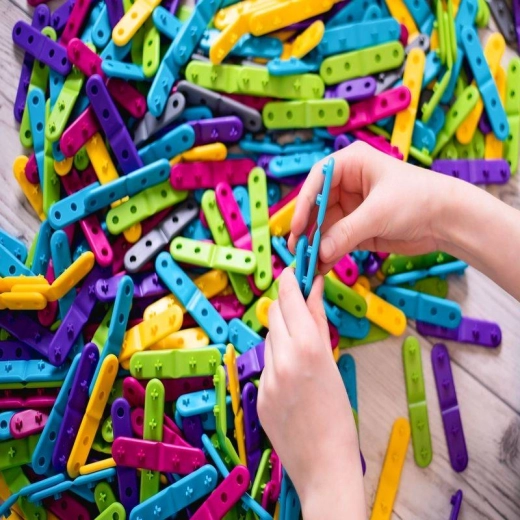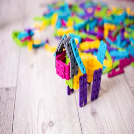 Les bâtonnets ont des bords arrondis, se connectent facilement à l’aide de verrous et d’ouvertures, et se séparent sans effort. Les longues bandes colorées permettent de créer de superbes constructions, personnages et diverses formes. Le livret d’instructions inclus aide à débuter l’aventure avec cet ensemble fantastique de blocs insolites.