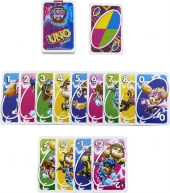 Le jeu familial UNO arrive en version enfant avec des motifs tirés du film Pat’ Patrouille. Des cartes colorées avec de grands chiffres et des personnages facilitent la reconnaissance et encouragent l’apprentissage des couleurs, des chiffres et des principes de jeu de base.