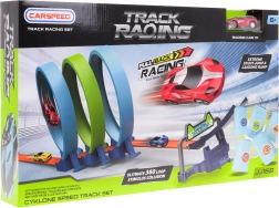 La piste se monte facilement à partir de pièces en plastique résistantes et ne nécessite aucune pile. Le coffret inclut également des autocollants décoratifs et une notice, pour commencer la course en un instant.