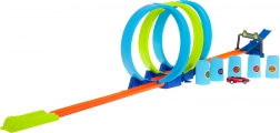 Cette piste de course colorée offre des sensations fortes avec un triple looping, un saut de rampe et le renversement d’obstacles. La voiture à propulsion pull-back se tend facilement et, une fois relâchée, franchit les boucles avant de filer vers l’arrivée. Idéale pour les enfants dès 6 ans qui aiment la vitesse, les cascades et la compétition.