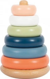 Cette élégante tour à empiler aux douces couleurs arctiques séduit les enfants dès 12 mois. Les six anneaux colorés sont enfilés sur la tige centrale par ordre de taille, ce qui exerce la logique, la patience et la précision des gestes. La surface lisse du bois offre un toucher agréable et la finition de qualité assure une grande durabilité.
