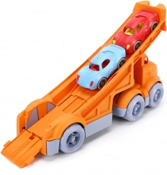 Découvrez un camion robuste avec voitures de course qui stimule le jeu imaginatif et développe la motricité fine et globale des enfants. Le tracteur à six roues avec rampe transporte en toute sécurité les deux voitures incluses et, grâce à ses formes lisses et à l’absence de pièces métalliques, convient aussi aux plus petits.