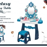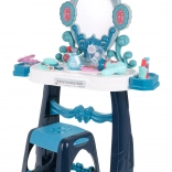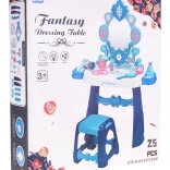 Les dimensions de la coiffeuse sont de 51 cm x 74,5 cm x 24,5 cm. Toutes les pièces sont fabriquées en plastique de qualité, sécurisé et facile à nettoyer.