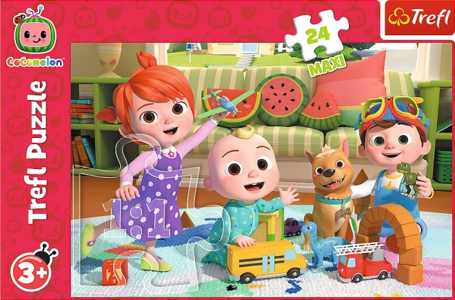 Découvrez l’univers de la série pour enfants COCOMELON avec ce puzzle maxi de 24 pièces. De grandes pièces solides, faciles à tenir et qui s’emboîtent parfaitement, idéales pour les premières compositions. L’illustration colorée avec les personnages motive les enfants à jouer et à recommencer.
