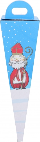 Cornet bleu avec motif de Saint‑Nicolas, longueur 50 cm. Idéal pour la distribution de Saint‑Nicolas, les friandises et les petits cadeaux. Emballage saisonnier élégant et pratique.
