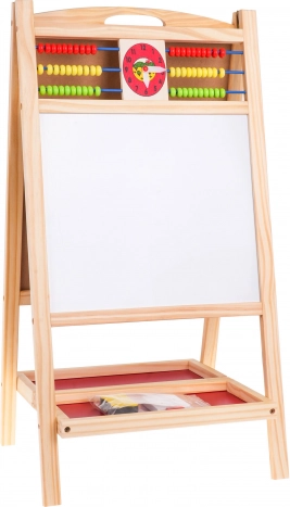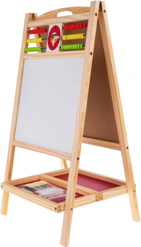 Le tableau en bois double face avec boulier est un outil éducatif idéal pour les enfants dès 3 ans, avec surface magnétique et ardoise, feutre, craies et éponge inclus. Favorise la dextérité manuelle et la créativité.