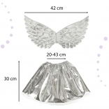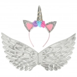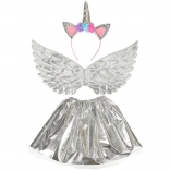Ce superbe costume permet de transformer votre enfant en une licorne unique. Il se compose d’une jupe argentée, d’ailes élégantes et d’un serre-tête finement orné de petites roses. Idéal pour toutes les occasions où l’enfant peut s’amuser dans un univers féerique.