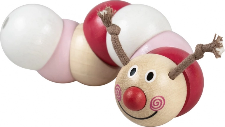 Detoa Chenille Rose Tea est un jouet interactif et coloré composé de formes en bois enfilées sur un élastique, qui se déplace, tourne et se plie. Idéal pour développer la motricité fine des enfants dès 6 mois.