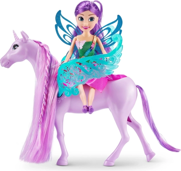 Découvrez le duo enchanteur de la fée et de sa licorne, idéal pour des histoires créatives de magie et d’aventures. La poupée possède de longs cheveux violets à coiffer et styliser, une tenue scintillante et des membres articulés pour prendre la pose. La licorne, avec ses ailes réglables et sa crinière tressée, invite à de fantastiques balades.