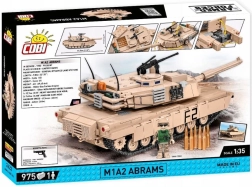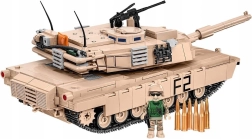 Avec le kit de construction COBI, vous construirez une version du char Abrams M1A2 développée sous licence par la société General Dynamics Land Systems. Le modèle est reproduit à l'échelle sensationnelle de 1:35. La dernière version de ce char de pointe se distingue par une représentation encore plus détaillée. Cela a été rendu possible grâce à l'utilisation de nouveaux blocs du catalogue sans cesse croissant d'éléments créés par COBI. Le modèle utilise uniquement des impressions de haute qualité qui ne s'effacent pas avec l'utilisation. Le véhicule possède un système de chenilles fonctionnel et des trappes ouvrantes dans lesquelles vous pouvez placer des membres d'équipage. La tourelle et le canon du véhicule sont mobiles. Sous le panneau de maintenance amovible se trouve un moteur reproduit à partir de blocs. Le char Abrams est enrichi d'accessoires comme un sac de blocs, des chenilles de rechange, des munitions et deux mitrailleuses. La trappe ouvrante permet d'accéder au moteur, qui a été recréé à partir de blocs. Le kit comprend une figurine très intéressante de conducteur de char américain équipée d'une mitraillette personnelle.