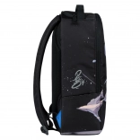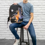 Le design du sac à dos est orné d’un motif de martin-pêcheur en vol, accompagné de formes abstraites et d’une lune. Cette impression marquante fait du sac à dos le centre de l’attention.
