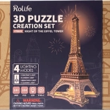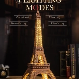 Découvrez la magie de Paris chez vous. Le modèle Rolife Nuit de la tour Eiffel restitue fidèlement l’architecture en treillis iconique de 1889 et, grâce aux LED intégrées, se transforme après assemblage en lumière d’ambiance décorative à l’atmosphère douce et romantique. Les pièces en bois découpées au laser s’emboîtent avec précision pour un montage fluide et agréable.
