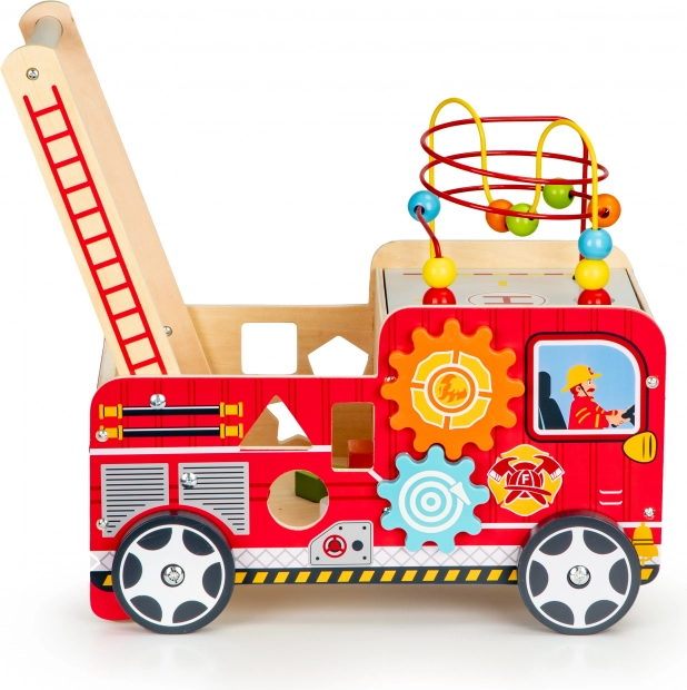 Le chariot en bois en forme de camion de pompier est l'outil idéal pour les premiers pas de votre enfant. Il est conçu pour offrir de la stabilité tout en fournissant du plaisir grâce à différents éléments interactifs comme des engrenages, labyrinthes de perles et trieurs de formes.