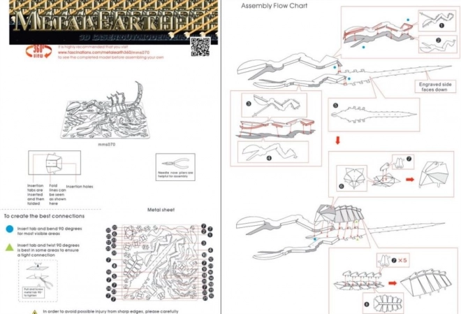 À partir d'une seule feuille d'acier (11 x 11 cm) devient un modèle époustouflant qui attire chaque passant. Le processus de construction nécessite l'utilisation de petites pinces pour plier les onglets et connecter les différentes pièces. L'âge recommandé pour l'assemblage est à partir de 14 ans.