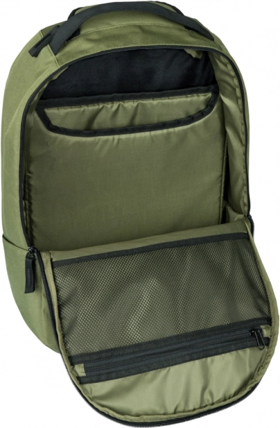 Le sac à dos urbain BAAGL eARTh de couleur kaki est fabriqué en matière 100 % recyclée et déperlante. Il offre un dos ergonomique, des bretelles réglables, une poche rembourrée pour ordinateur portable 15" et des poches avant et supérieure zippées pratiques. Avec son poids léger de 500 g, son volume de 18 l et une capacité de charge jusqu’à 7 kg, il est idéal pour l’école, la ville et le travail.