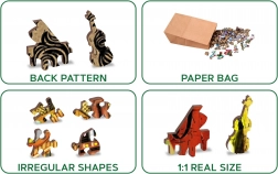 Ce puzzle en bois haut de gamme propose un motif original de ville musicale avec instruments et tours, qui plaira aux adultes comme aux enfants curieux. Les pièces sont découpées au laser dans une plaque HDF solide (3–4 mm), avec des bords lisses sans échardes, et une partie d’entre elles adopte des formes spéciales d’animaux, de bâtiments et d’objets. Grâce à cela, l’assemblage est plus exigeant, mais aussi extrêmement amusant et visuellement impressionnant.