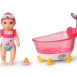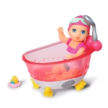 Adorable mini poupée BABY born Minis Amy en maillot de bain rose, livrée avec une petite baignoire aux pieds en forme de canard, une mini douche et un adorable coussin en forme de cœur. Une petite canard en caoutchouc est également incluse pour rendre l’heure du bain encore plus amusante.