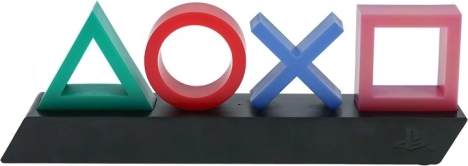 Lampe de bureau avec motif sous licence des symboles PlayStation offrant trois modes d’éclairage pour une expérience de jeu unique.
