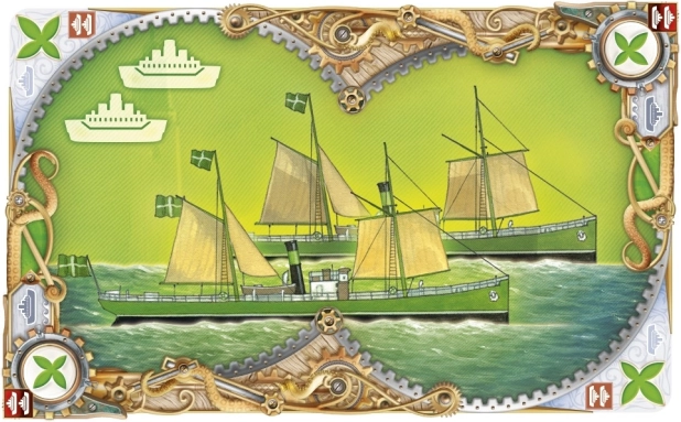 Validez des billets reliant plus de deux villes et construisez des ports pour d’importants bonus de points en fin de partie.